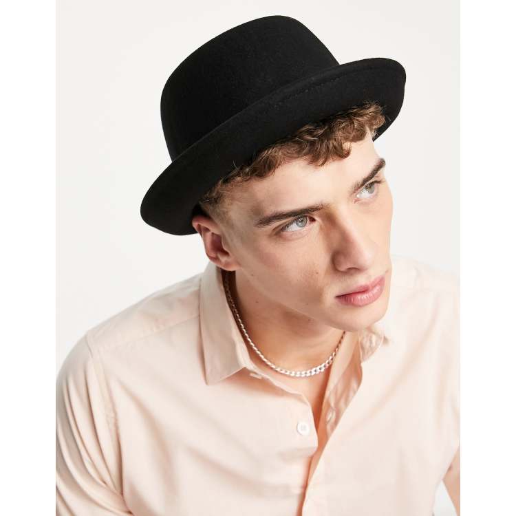 Asos Design Wool Pork Pie Hat In Black And Size Adjuster Asos